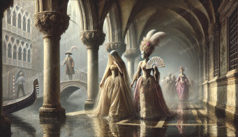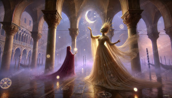 Il est des images qui ne se regardent pas, mais qui se ressentent. « Les Dames du Silence – Venise voilée » appartient à cette catégorie rare. Dans le silence d’une Venise imaginaire, la lumière glisse sur les étoffes, effleure les visages, et s’attarde sur les gestes figés du rêve. C’est une œuvre à la frontière de la réalité et du mythe, une invitation à la contemplation.