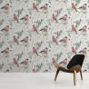 Des oiseaux et des fleurs sauvages délicates évoquant un romantisme naturel pur ainsi qu’un sentiment d’apaisement. Des couleurs qui s’harmonisent comme le bleu pâle, le vert les tons de rose créent une impression de paix et de calme.