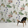 Avec une multitude de fleurs colorées sur un fond blanc, ce modèle de papier peint créant un atmosphère unificateur, vous donnera l’impression d’être plongée dans une prairie estivale. Ce mélange de couleur : violet, rose, blanc, jaune, vert, peut aussi bien créer un ensemble chic dans une chambre que dans un salon.