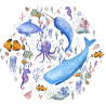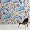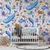 Un monde sous-marin éblouissant avec des plantes et des animaux marins fascinants: baleine, hippocampe, espadon et bien d’autre, idéal pour des chambres d’enfants. Des couleurs de l’arc-en-ciel fantastiques attirent le regard et racontent des histoires intéressantes. Apaisante et relaxante, cette illustration emmène les tout petits dans un fabuleux monde maritime imaginaire.
