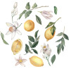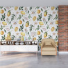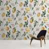 Des citrons entourés de fleurs délicates ponctués de branches dans diverses nuances de verts donnent sur ce fond blanc un sentiment de nostalgie. Ce papier peint Lemon apporte lumière et convivialité à votre pièce, une illustration idéale pour votre salon.