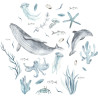 Ce papier peint vous donne la possibilité de transformer votre chambre ou toute autre pièce, en une ambiance maritime plus réaliste que jamais. Baleine, dauphin, méduse, crabe et bien d'autre sont au rendez-vous pour vous permettre de plonger dans les fonds marins au plus près de la fauve et de la flore maritime.