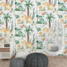 Donnez de la personnalité à la chambre de votre enfant en optant pour ce papier peint tournant autour de l’univers des dinosaures. Ce modèle est idéal pour permettre une atmosphère ludique et chaleureuse à votre enfant. Cette illustration permet donc de mettre de côté la dangerosité de ces prédateurs à travers les motifs et couleurs choisis afin de rendre la chambre de vos enfants plus florale et tropicale.