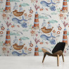 Pour que votre enfant découvre à sa manière l'univers marin, optez pour la décoration de sa chambre, un papier peint mettant en valeur le monde de la mer à travers ses bateaux, ses créatures, sa végétation et son port. Un modèle d'illustration qui conviendra aussi bien aux garçons qu'aux filles dans le but de les faire voyager le temps d'un instant sur les larges de l'océan.