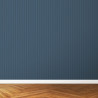 Ses rayures subtiles structurent harmonieusement les murs, mettant en valeur la profondeur vibrante du bleu hussard pour une ambiance à la fois raffinée et dynamique.