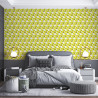 La palette de couleurs de ce papier peint consiste en des nuances de vert et de jaune sur un fond blanc, ce qui crée un effet cocooning et équilibré. Ces formes de feuilles harmonieuses et originales viendront sublimer vos murs.