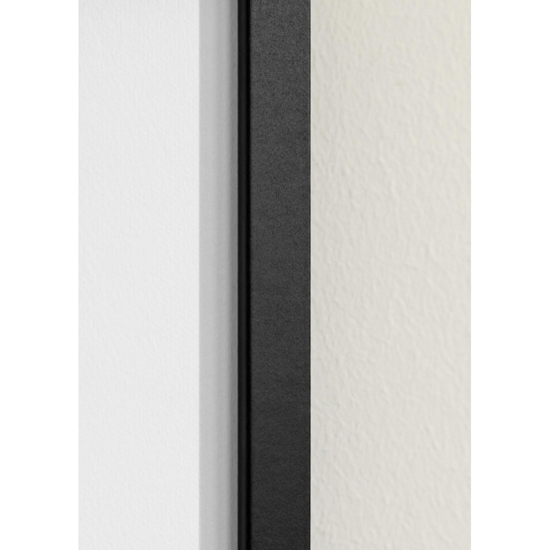 Ce cadre peut être accroché aussi bien en portrait qu’en paysage, grâce à son système de support mural intégré. Sa moulure carrée de 15 mm, sa profondeur intérieure de 9,5 mm, son fond en carton et son assemblage par mines souples assurent une installation simple, stable et durable.