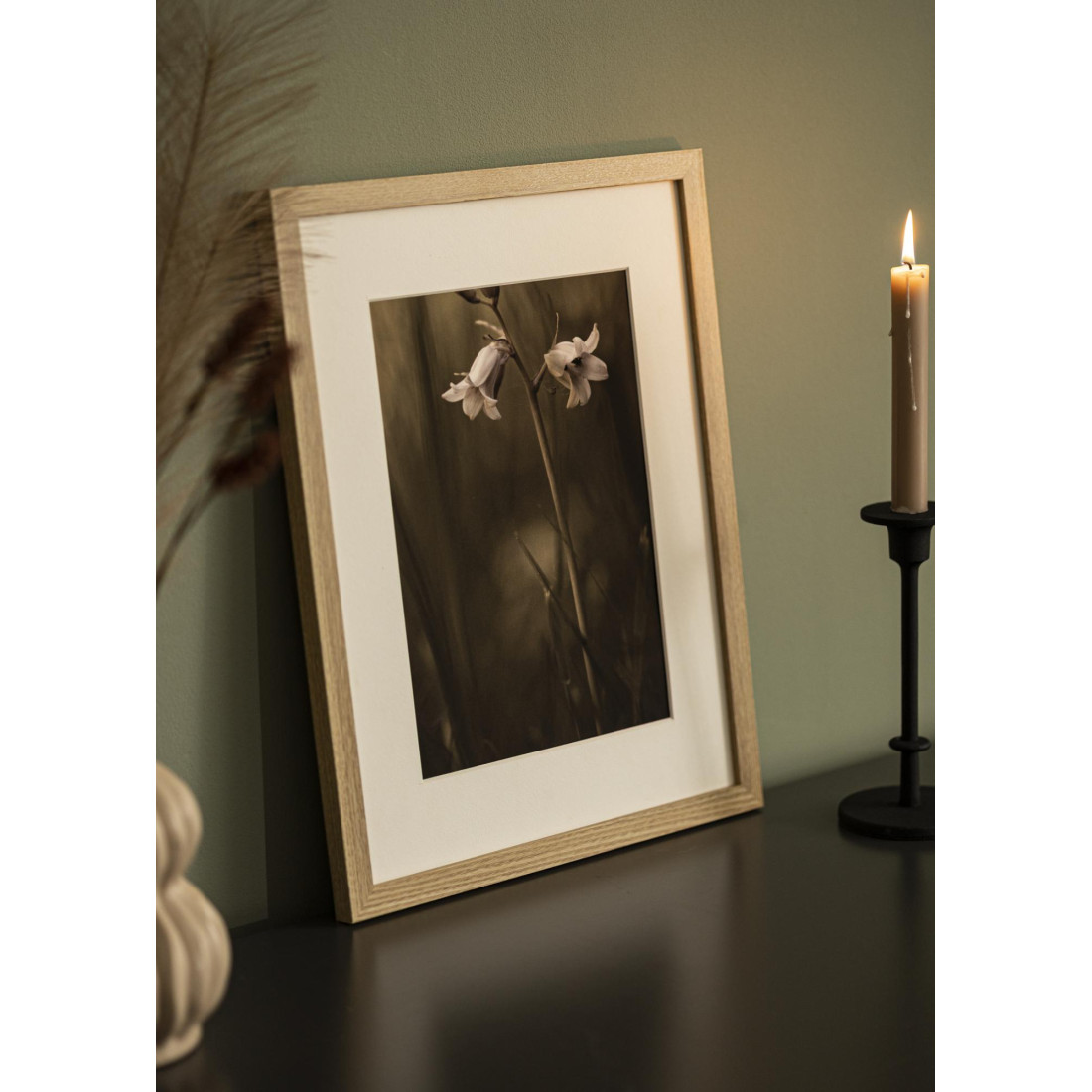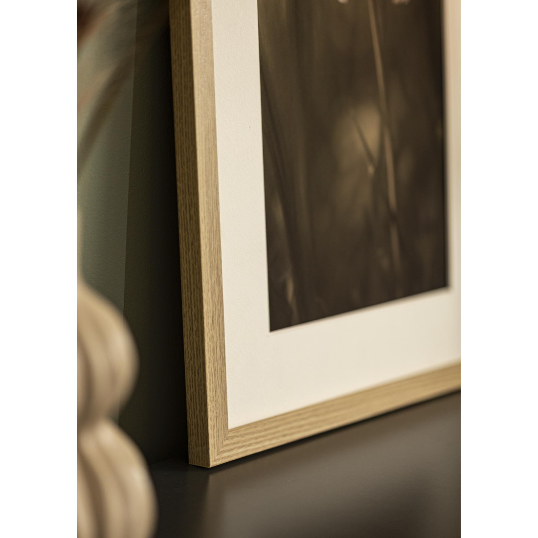 Fabriqué en bois MDF plaqué chêne, le cadre allie esthétique et solidité. Le verre acrylique, léger et résistant, protège efficacement votre visuel. Son passe-partout blanc avec ouverture 39×69 cm valorise les images 40×70 cm en créant un contraste subtil et un effet galerie très élégant.