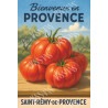 À l’arrière-plan, les oliviers et les collines paisibles rappellent la douceur du Sud, et les savoir-faire agricoles transmis de génération en génération. Cette illustration rend hommage à la tomate de Provence, reine des potagers méditerranéens et ingrédient phare de la cuisine locale.