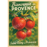 Quatre pommes rouges prêtes à être cueillies sous la lumière dorée d’un verger provençal. Une affiche rétro qui sent bon l’automne et les souvenirs d’enfance.