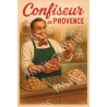 Confiseur de Provence est une ode aux douceurs d’antan et à l’art raffiné des confiseurs d’autrefois. Cette illustration pleine de tendresse et de couleurs rend hommage à ces artisans du goût, gardiens de recettes précieuses transmises de génération en génération, au cœur des villages du Sud.