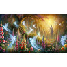 Des fées virevoltent dans un jardin baigné d’or, attirées par une présence centrale : la Lumière Mère. Une scène sacrée et poétique.