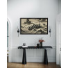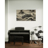 Inspirée des estampes classiques japonaises, cette œuvre mêle tension dramatique et épure contemplative. Elle évoque l’endurance, le courage silencieux, la solidarité dans l’adversité — et peut-être, au loin, la promesse d’un renouveau.