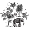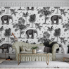 Un paysage animalier ainsi que végétal avec des éléphants, panthères, oiseaux et des arbres de tout type. Les illustrations de couleurs noires sur fond blanc reflètent la diversité de la nature et vous donne l’impression d’être au plus près de la biodiversité tous les jours.