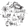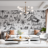 Des animaux de la savane, des roches, de la végétation, un décor qui peut laisser parler notre imagination afin de se sentir plonger en plein safari. Cette illustration assez contradictoire entre la sécheresse de la pierre et l’émergence de la flore, serait idéal pour sublimer votre intérieur.